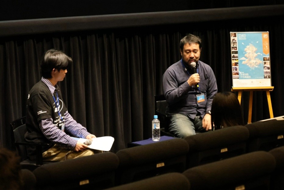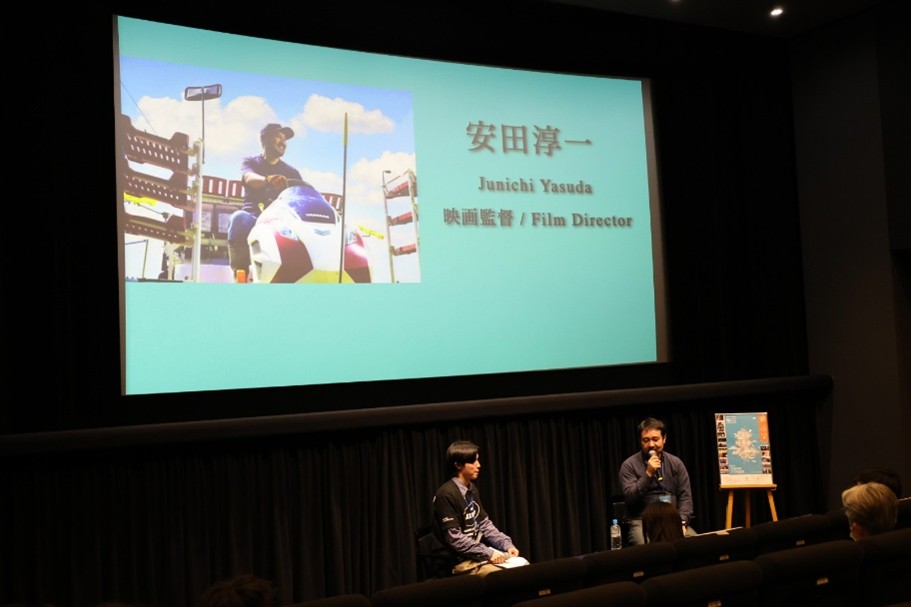 映画上映後には、安田監督ご本人によるトークショーが行われ、京都国際学生映画祭の学生委員や観客からの質問に、数多く答えてくださいました。